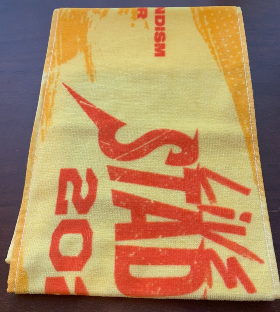 会場に来ている人は、このマフラータオルを肩にかけていましたね。