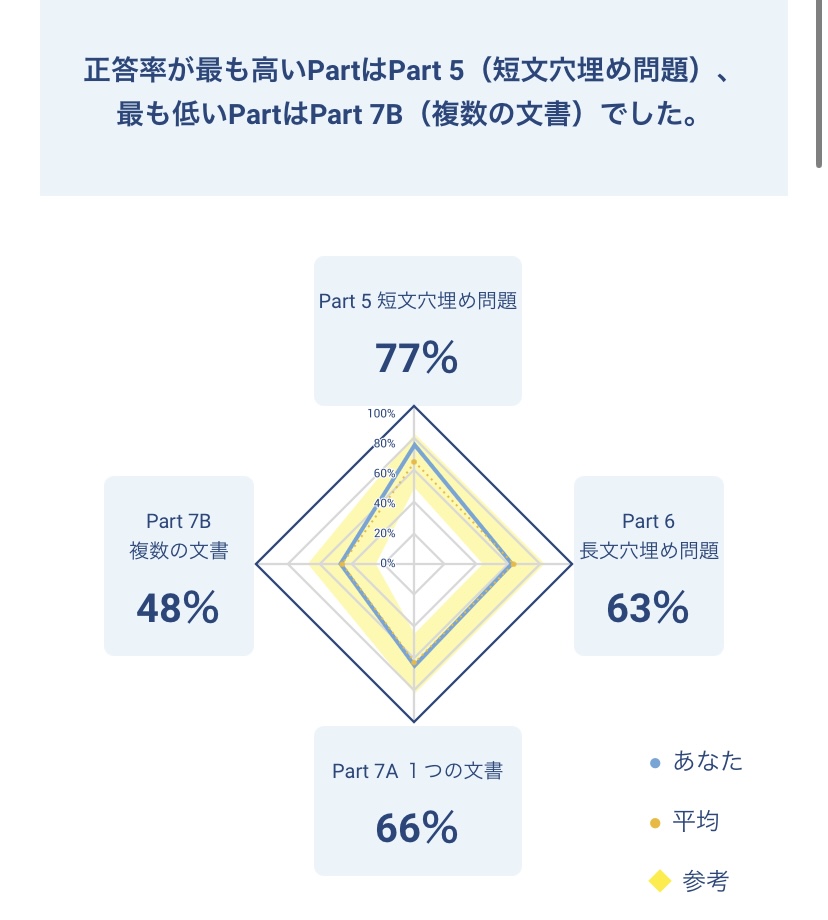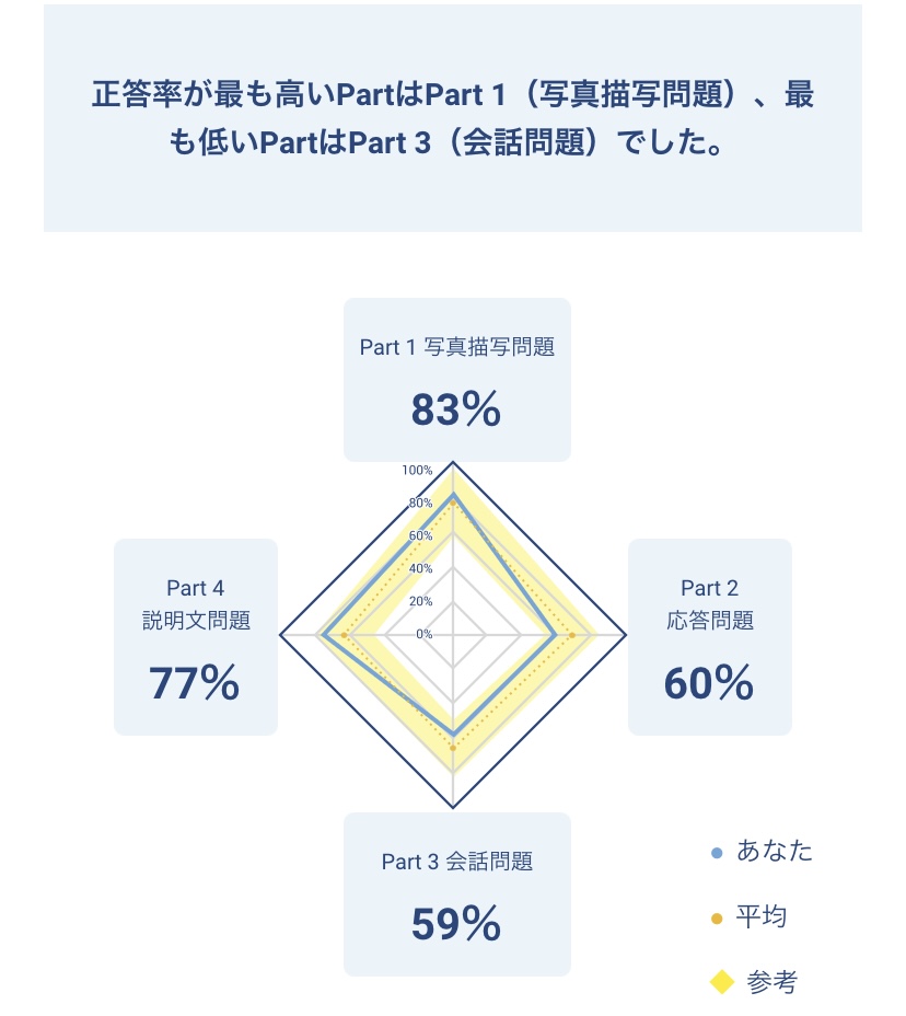 パート4は、自信を持って答えられた問題が多かったので、納得の結果です。